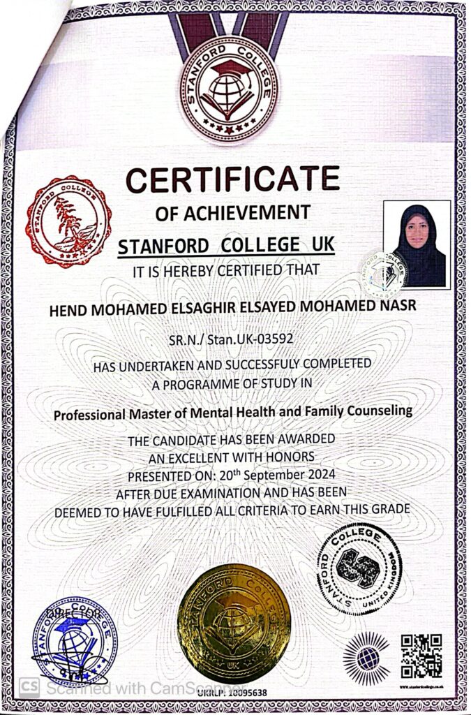 HEND MOHAMED ELSAGHIR ELSAYED MOHAMED NASR SR.N./ Stan.UK-03592