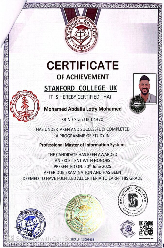 Mohamed Abdalla Lotfy Mohamed SR.N./ Stan.UK-04370