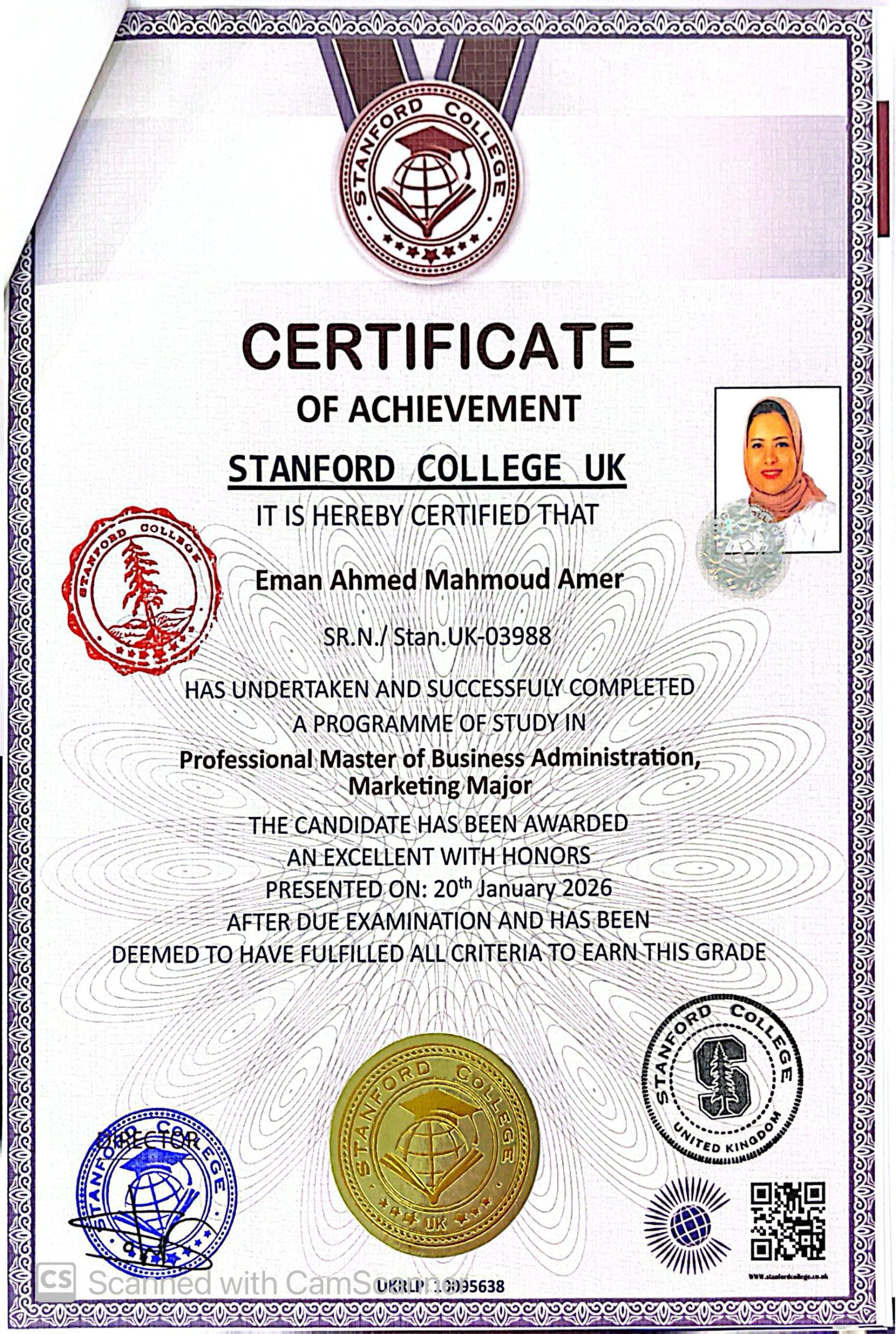 Eman Ahmed Mahmoud Amer SR.N./ Stan.UK-03988