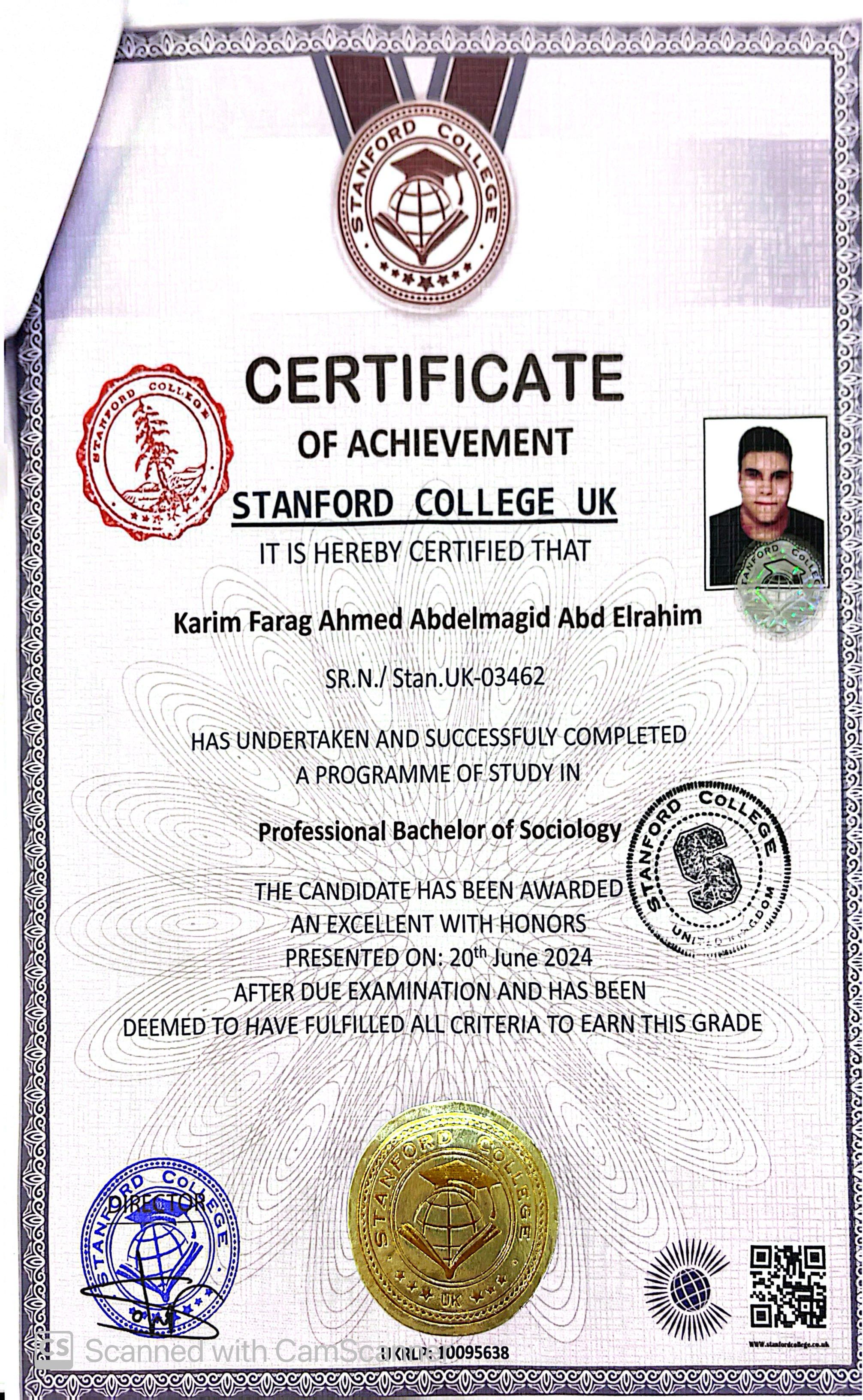 Karim Farag Ahmed Abdelmagid Abd Elrahim SR.N./ Stan.UK-03462
