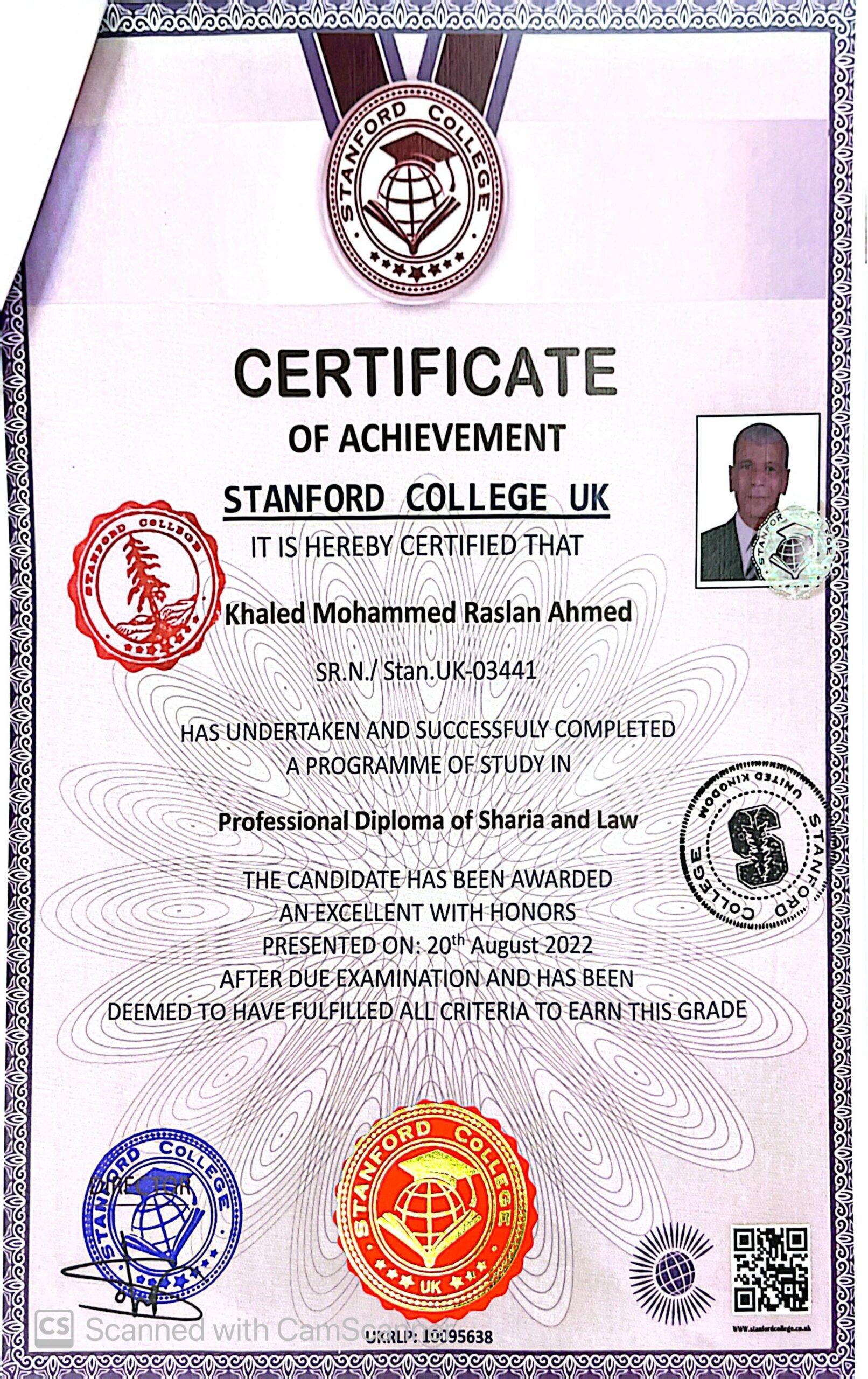Khaled Mohammed Raslan Ahmed SR.N./ Stan.UK-03441