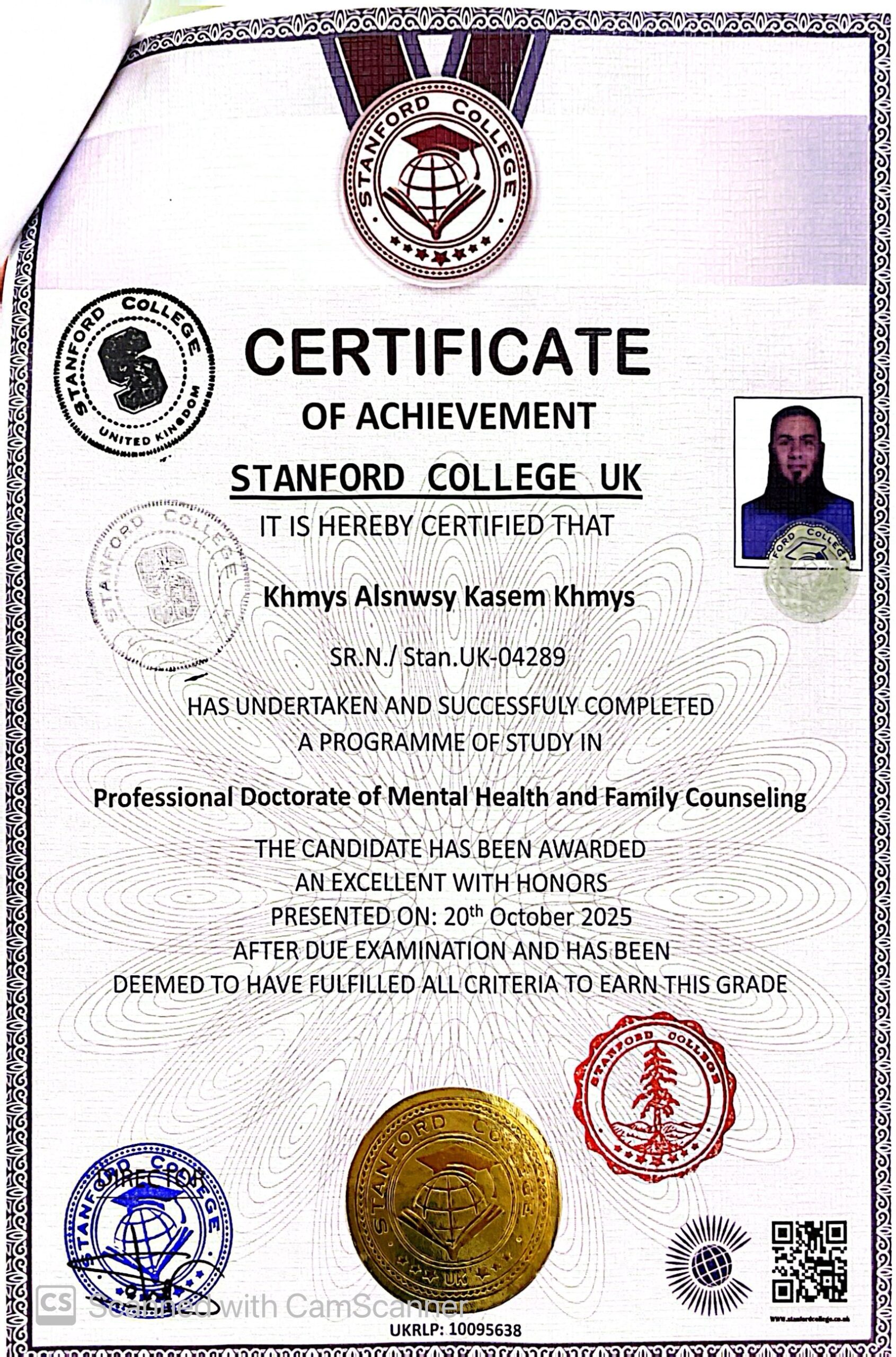 Khmys Alsnwsy Kasem Khmys SR.N./ Stan.UK-04289