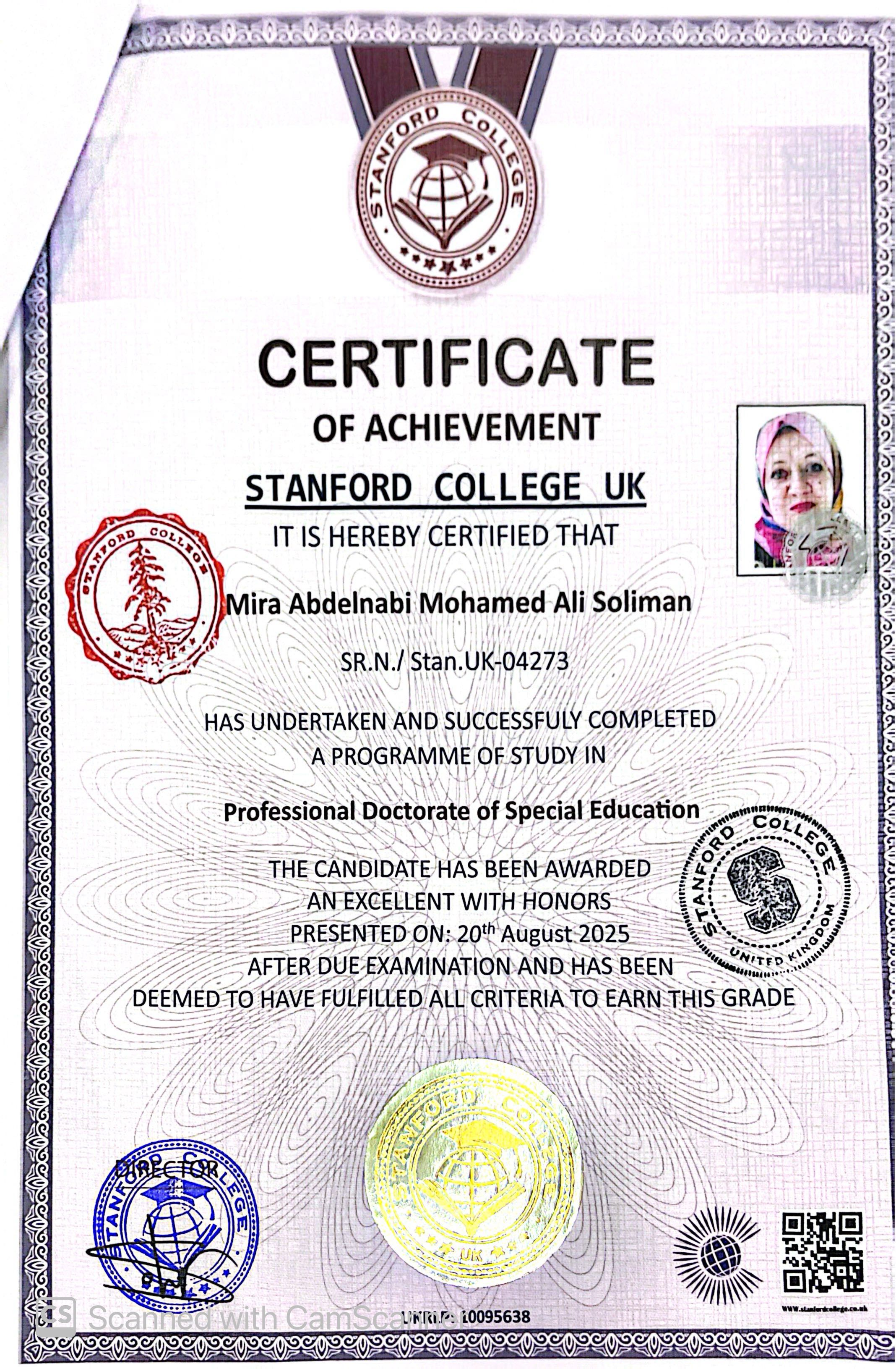 Mira Abdelnabi Mohamed Ali Soliman SR.N./ Stan.UK-04273